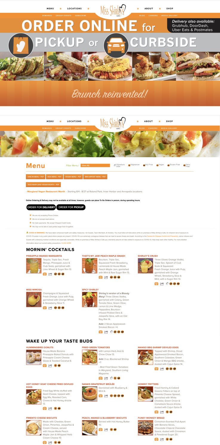 By implementing these changes, Miss Shirley's website will better reflect the warmth and charm of the brunch cafe, enticing more users to explore their offerings and experience the delightful ambiance of their restaurants.