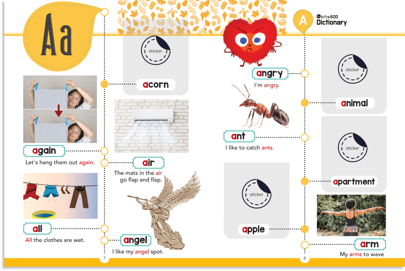 Onebite is a year-and-a-half-long English learning publication project for ages 4 to 7. It contains 40 children’s books, four dictionaries, stickers, ten tri-fold books, and other classroom materials such as a puzzle. I designed the entire look of the children’s book, dictionaries, and classroom materials. I also illustrated books while managing freelance illustrators for the project. Also, to ensure the quality of the final products, I communicated with the R&D team for the overall process.